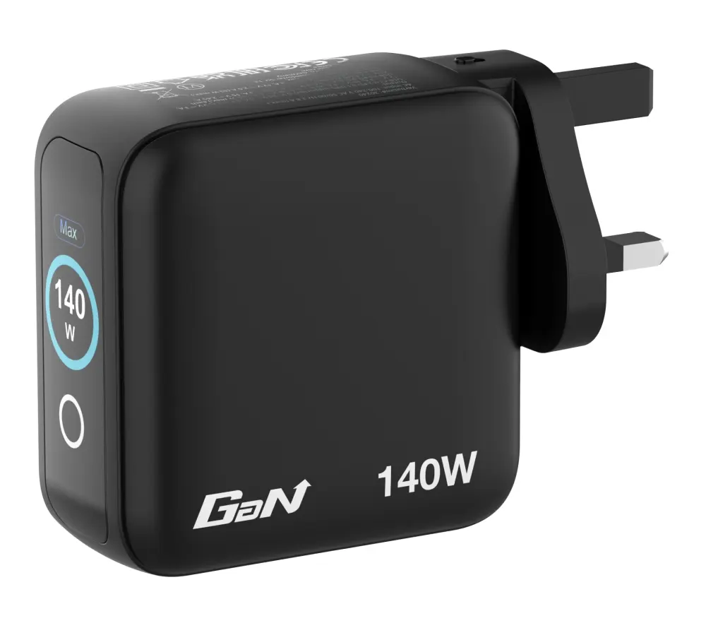 Създадено за максимална гъвкавост, това мини GaN стенно зарядно устройство осигурява обща мощност до 140 W, разпределена между четири порта, което позволява едновременно зареждане на лаптоп, таблет и смартфони. Вграденият TFT дисплей показва в реално време параметрите на зареждане, а технологията PPS оптимизира мощността за по-бързо и безопасно зареждане на всяко устройство. Усъвършенстваната GaN технология осигурява висока ефективност и по-ниска работна температура в компактен размер. Комплексната система за защита предпазва от свръхток, пренапрежение, прегряване и късо съединение, като е допълнена от здрав огнеустойчив корпус от PC материал. С включени сменяеми EU, UK и US щепсели, зарядното е компактно, надеждно и идеално за пътуване навсякъде.
