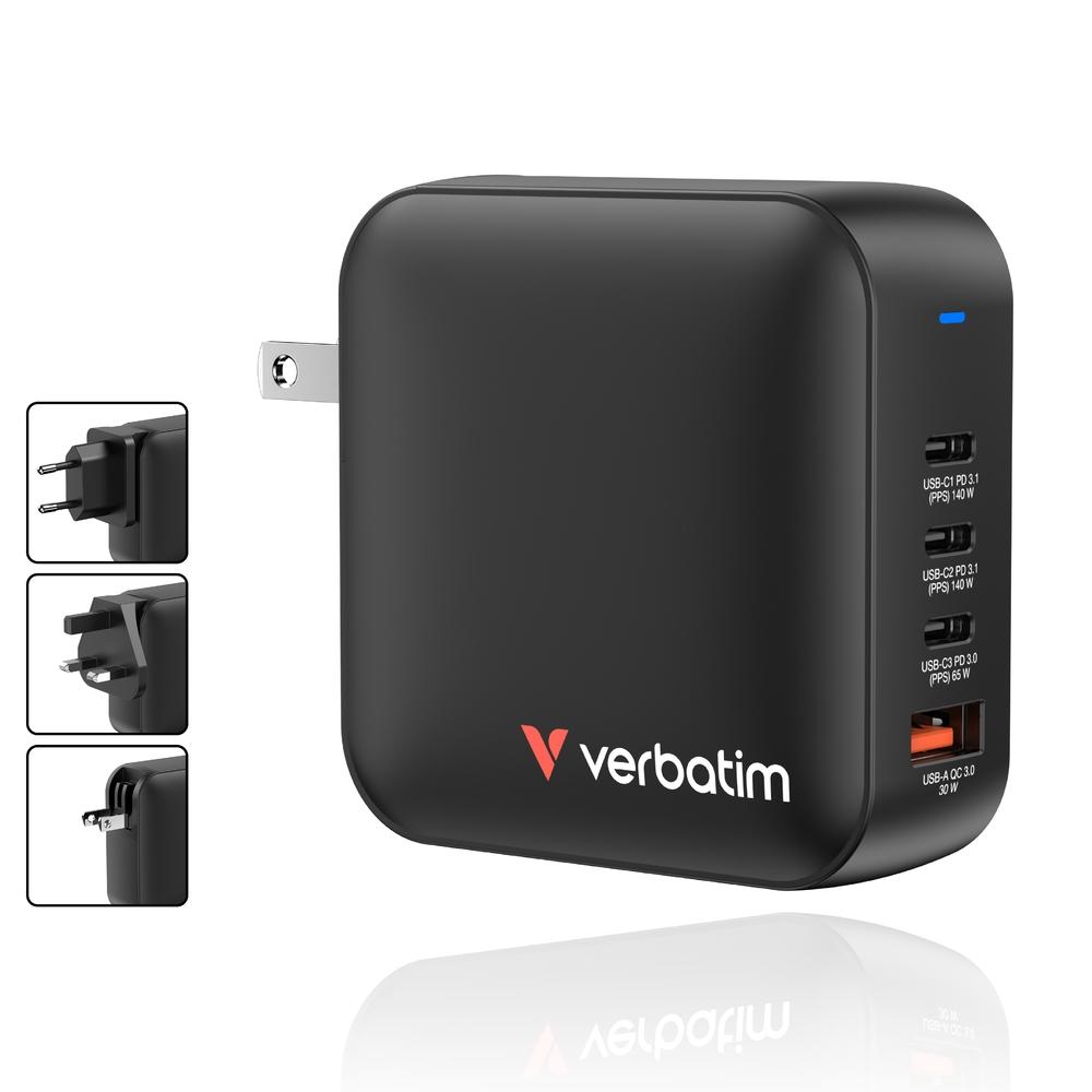 Зарядно устройство Verbatim Mini GaN Charger 165W 4 Port US plug with EU and UK adaptors