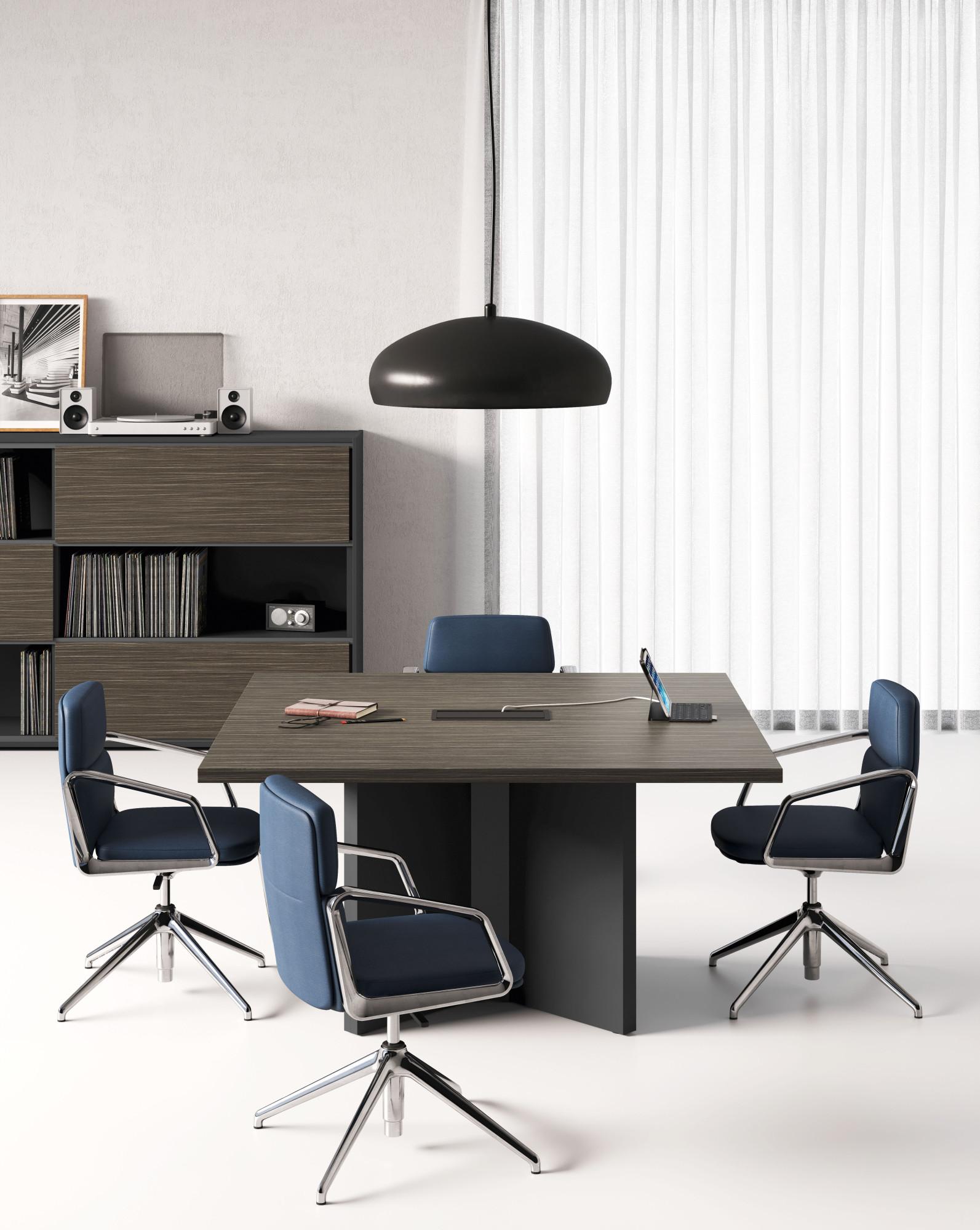 Елитната колекция от серия ELITE предлага два вида заседателни маси - правоъгълни, предназначени за 8 души, и квадратни, които могат да побират до 4 души.
