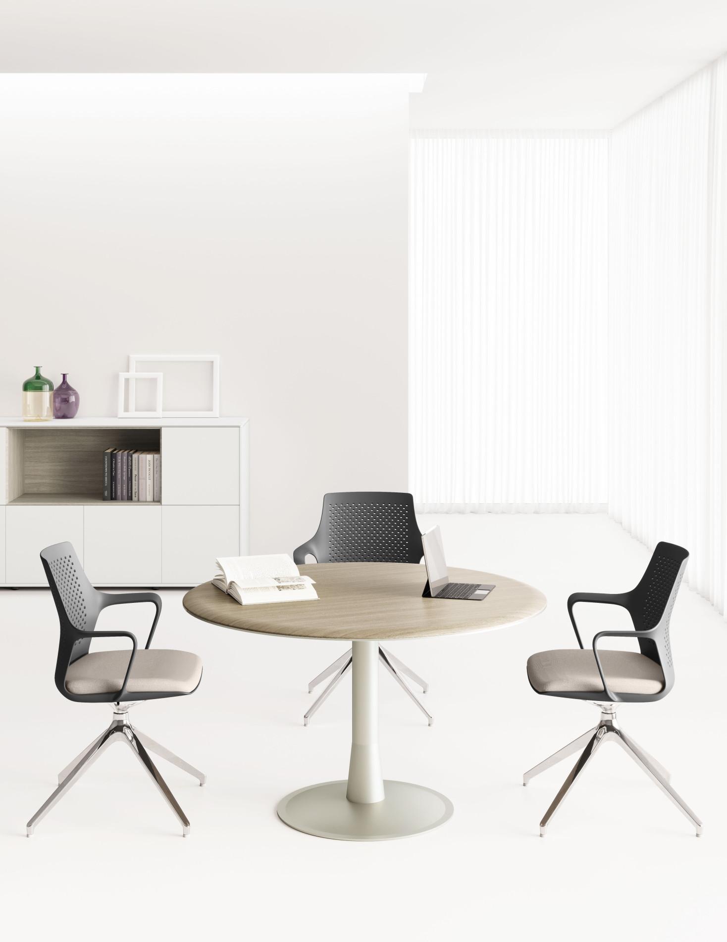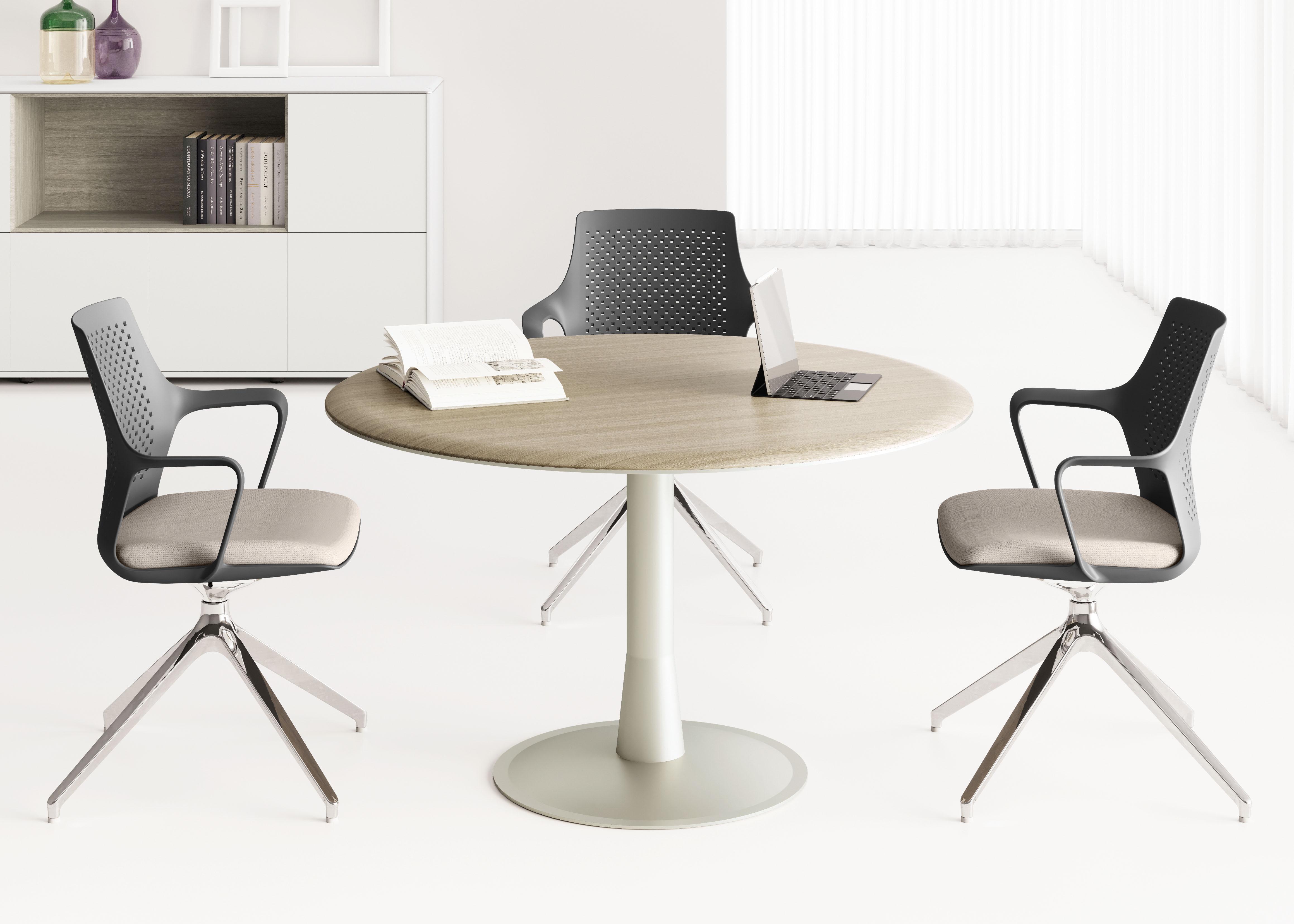 Конферентните маси са представени в кръгли форми. Те са идеални както за малка среща със служители, така и за големи срещи с фирмени партньори.